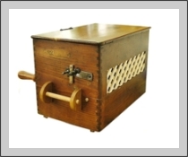Restaurierte Drehorgeln und Spieluhren.